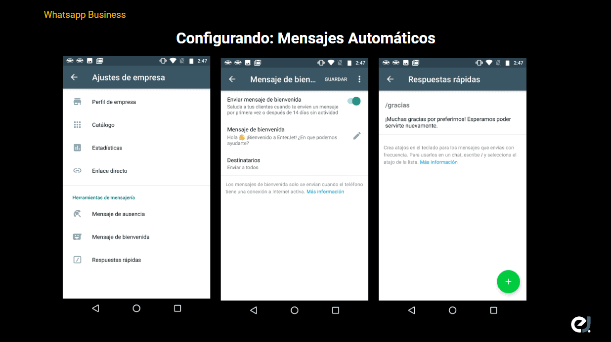 • Respuesta ausente. Es una respuesta automática y en realidad ayuda a responder a tu cliente cuando estás fuera del horario comercial.